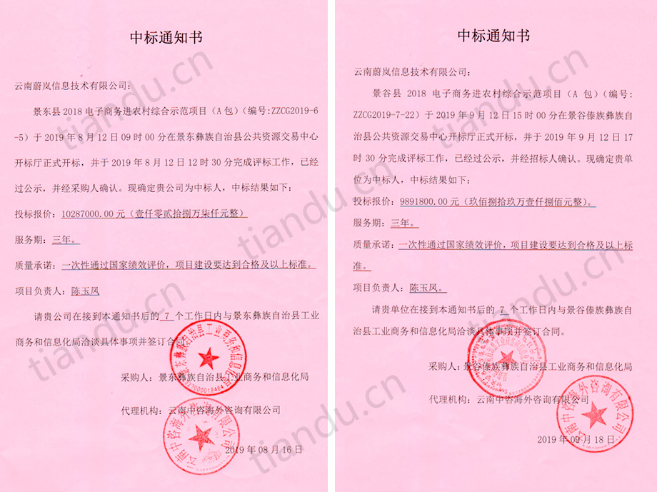 祝贺尊龙凯时集团旗下“云南蔚岚信息技术有限公司”中标景东县、景谷县、孟连县等三个县的电子商务进农村综合示范项目,目前云南蔚岚信息技术有限公司已经为昭通市彝良县、大理州巍山县、普洱市景东县、普洱市景谷县、普洱市孟连县等5个县提供了国家电子商务进农村综合示范县项目的服务。